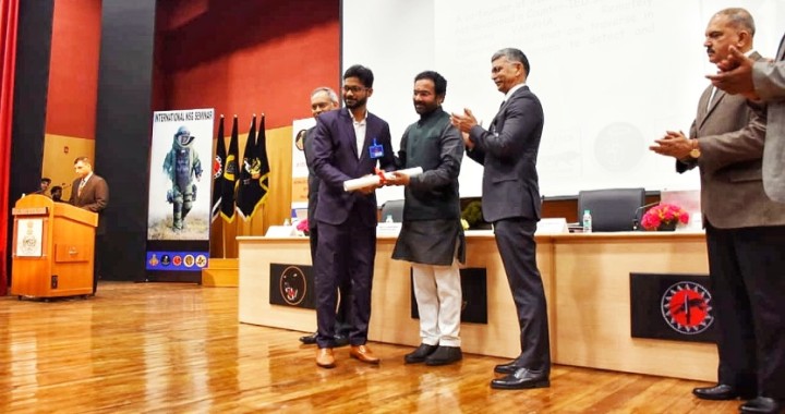 Union Minister of State for Home Affairs, Shri G. Kishan Reddy, awarding with ‘NSG counter IED innovator award 2019’ to Sandeep Kumar Mishra, Navyug Infosolutions Pvt Ltd for his efforts to develop ‘Remotely Operated Vehicle’ & ‘Tactical Engagement Trainer’